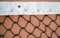 Banda superior de PVC Blanco, Ribete de poliéster negro en los laterales y en la parte inferior de la red.
